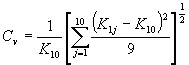 和十次測讀值K1j的平均值K10及其相對標(biāo)準(zhǔn)偏差Cv