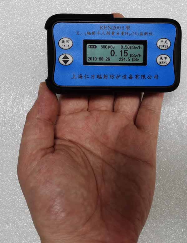 REN200B型X、γ輻射個人劑量當量HP(10)監(jiān)測儀(簡稱:個人劑量報警儀)內置高量程蓋格計數(shù)管為探測器,主要用來監(jiān)測各種放射性工作場所的X、γ以及硬β射線的輻射,具有較寬的測量范圍。能顯示工作場所的劑量當量率和累積劑量,更換電池時,日期及累積數(shù)據(jù)能永久保存?蛇x配RenRiPersonal個人劑量管理軟件,該軟件可存儲多個人的歷史數(shù)據(jù),能記錄日累積、月累積、年累積、輻照時長、計算平均劑量率、扣除或不扣除本底輻射,且以文字和圖譜的方式展現(xiàn)數(shù)據(jù)。廣泛應用于核電站、加速器、鋼鐵、化工、同位素應用、工業(yè)X、γ無損探傷、放射醫(yī)療、鈷源治療、γ輻照、放射性實驗室、核設施周圍環(huán)境監(jiān)測等領域中的工作人員進行個人安全防護監(jiān)測及放射性提示。